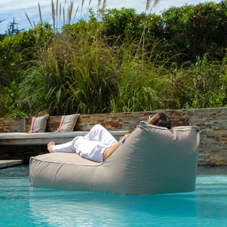 Fabricada con tela impermeable y filtro UV, puedes usarla en terrazas, jardines o incluso dejarla flotar en la piscina.